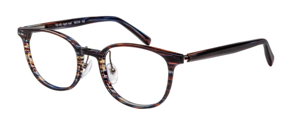 まるでメタルフレームのようにすっきりとした見た目と、軽やかな装用感を生み出しながら、奥行き約6.0mmのT型リムがレンズ厚を隠し、レンズ周辺に発生する渦を軽減します。